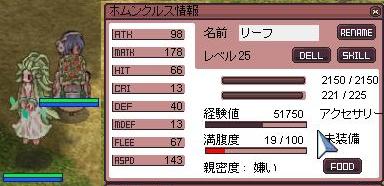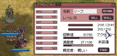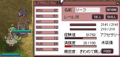 たまり場にて ♀のVバランスケミ(スクリアーガ) でリーフへまったりとえさやり 異世界の猫の手職員付近にて 異世界に行けるキャラ で釣り。 (↑ 異世界に行けるキャラはHIME ローグ バード エスマリンカ スパノビ アサシン AGITUプリ モンクで 今回やったのはアカウント2のAGITUプリ アサシン スパノビ エスマリンカー) 早くリーフを進化させて 「きわめて親しい」にさせて 「メンタルチェンジ」を習得したいけれど ここはまったりと長い目で( ‐ω‐) 現在は進化前の「普通」 餌が全2000こ持っているのだが、 残り1500個を切ったところ。 うちの予想じゃ大体半分くらいかな……? ―――たまにえさやりそびれて、ホム泣かせちゃってるけどね……(´・ω・`) メインのはずのアカウント1(♂)は