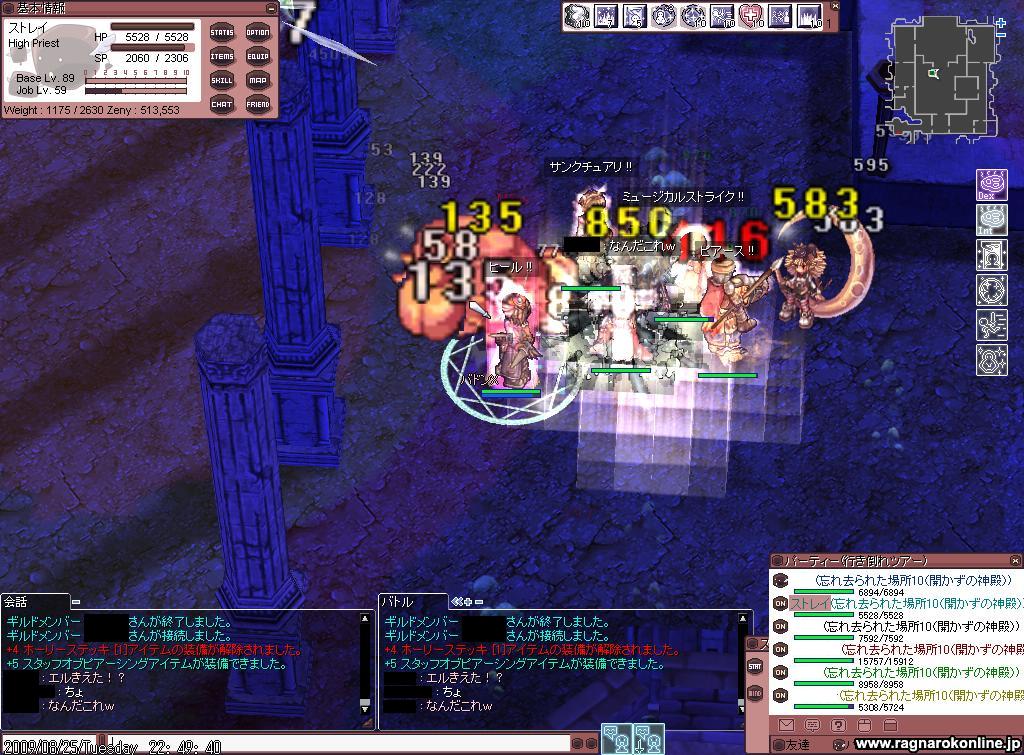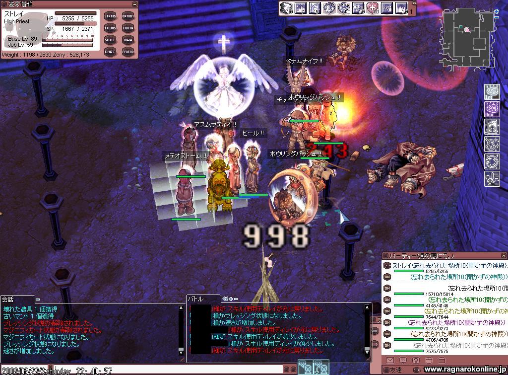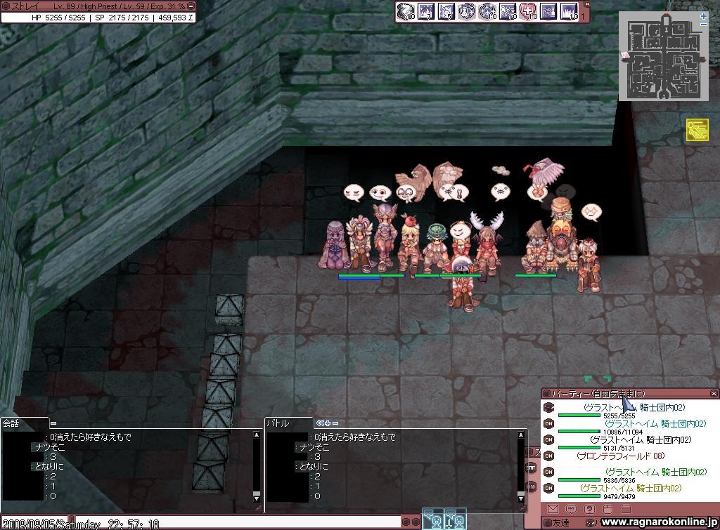 そんで、露店をめぐっていたら ずっと欲しかった『ファルコンローブ』が売られていたので すぐに買ってしまったw 1,8Mだったので 昨日の8時間+今日の3時間かな? で3200ぐらいたまってた羽を3000個売ることで買いましたw (ちなみに、爪は6000個越えしたよw) さて、落ちようかなと思ってた頃に、 3人で狩り行くような話に。 んで、うちは成り行きで参加。 場所はノーグ2で メンバはHP(ストレイ) BS(Friendsさん) Hiwiz(最近恋Gに70ナイトで入ってくれたHIWizメインの人)で BSさんが釣った後、 HiWizさんがSGを。 そしてうちがSGで凍ったところをMEで。 貸し切り状態だったし、 結構サクサク狩れたのはいいんだけれど…… 時間が時間なだけに眠気が……w 最後の方は半ば落ちながらも狩りを1Hして終了。 後の話だけど、 2人も眠かったらしく、 このままでは全員寝落ち全滅フラグが……ww 今日のG狩りは、期間限定のダンジョンの『海底ダンジョン(上級コース)』に行ってきた。 これがバドンXが写ってるSS。 G狩り行ってる時ではないけれどね。 相変わらずのわきの多さ。 ……と言っても、これで2回目だけどねw ある程度回ったのち、 MAPの真中やや上あたりに陣取ることに。 ここで固定狩りw 前衛さんも、火力のWizさんとHiwizさんもいたので どんどん狩れた。 90台PTで前衛さんを支援していたうちは、 支援だけで手一杯だったけどね……><;; 帰ってくるたびに、アスムプティオ 速度増加 自分のところにサンクチュアリをしてたけど、 しそびれて、アスム切らしてたり、 ブレス速度やヒールしてても切れてることもあって、 自分としてはいまいちだなと……w それでも、みんな頑張ってくれてたので、 ころがったりはあったものの 決壊することなく狩りができたw あそこでは、すぐにわくので帰ってたまり場でSS。 みんなお疲れ様です!w |